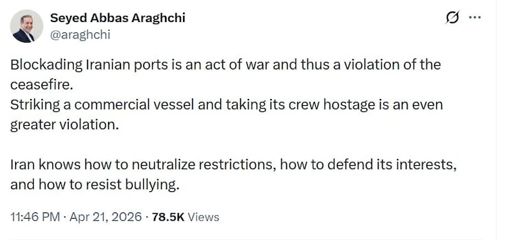 Tehran sees it differently. Foreign Minister Abbas Araghchi recently took to X (formerly Twitter) to clarify that a blockade is internationally recognized as an act of aggression. To Iran, negotiating while their ports are sealed is like trying to discuss a lease while the landlord has a boot on your neck.