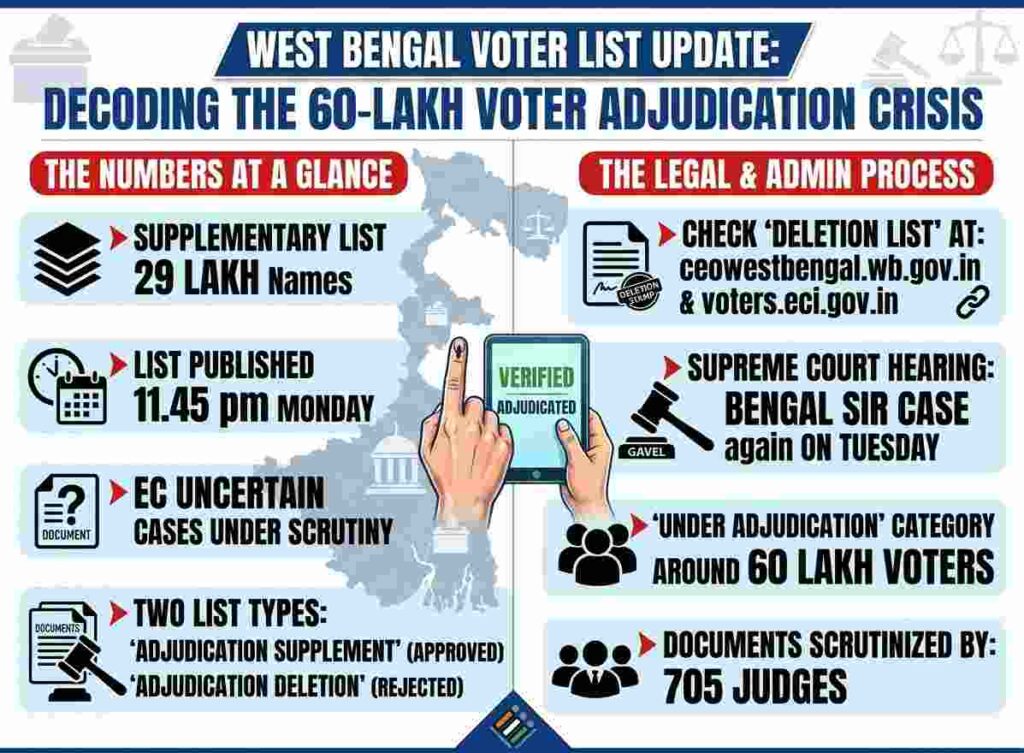While 29 lakh names have been processed, the exact ratio of “Adjudication Supplement List” (approved) vs. “Adjudication Deletion List” (rejected) remains a point of intense scrutiny. Early reports suggest that while the list is technically available on the CEO West Bengal website (ceowestbengal.wb.gov.in) and the ECI portal, high traffic and technical hurdles have made downloading the data difficult for the common citizen.