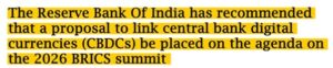 Multilateral groupings such as BRICS are exploring trade settlement mechanisms based on local currencies. In this context, the Reserve Bank of India has proposed an interoperable digital currency network to facilitate cross-border transactions among BRICS nations.